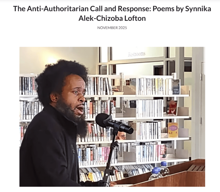 "Synnika Alek-Chizoba Lofton is an award winning poet, the president and CEO of Guerrilla Ignition LLC, host of a Nationally Syndicated radio show, and an educator, teaching literature at Chesapeake Bay Academy and English courses at Norfolk State University. Lofton has recorded more than one hundred and fifty CDs, albums, CD-singles, and mixtapes of poetry, including his highly praised debut, The New Breed. He is the author of twelve books and the founder of Riot Speech, a musical genre combining performance poetry with traditional musical forms, such as Rock, Jazz, and Hip Hop. His poems have been published in Experience Reality Magazine, Quay: A Journal of the Arts, UpStreet: A Literary Magazine, and, in 2014, Lofton has been featured in Blind Sided Magazine. He is a regular on Virginian television programs such as The Hampton Roads Show and Chesapeake’s Thinking Out Loud on WCTV. He teaches World Literature, British Literature, and Composition, while touring the country, performing at literary festivals, musical festivals, poetry readings, open mics, concerts, high schools, and colleges."